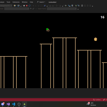 The game features a basic physics engine, with gravity, jumping, and dashing mechanics in an arcade-styled movement. It also features procedural terrain creation (the platforms that appear), increasing in difficulty as the player progresses. Overall, as an intro to game developement, Junimo Kart taught me a lot about object-orientated programming, procederal generation, and C#.