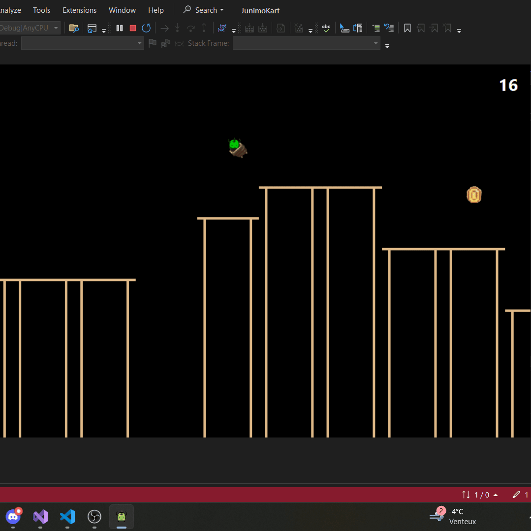Junimo Kart is a 2D platformer game developed in C# using Visual Studio 2022, built in mid 2023. Inspired by the 2D platformer of the same name in Stardew Valley, this was my first major game development, laying out my foundation for 2D game architecture.